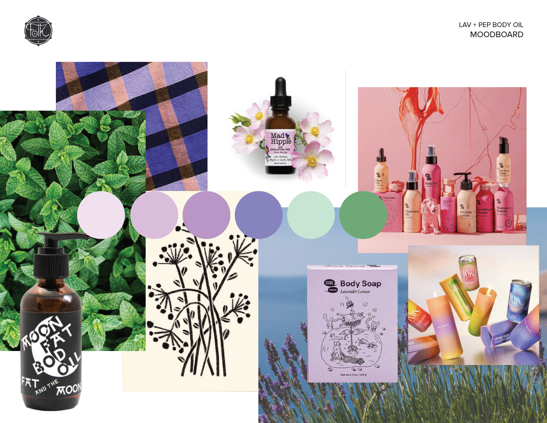 Label design for Folk Potions' Lav + Pep Cooling body oil.