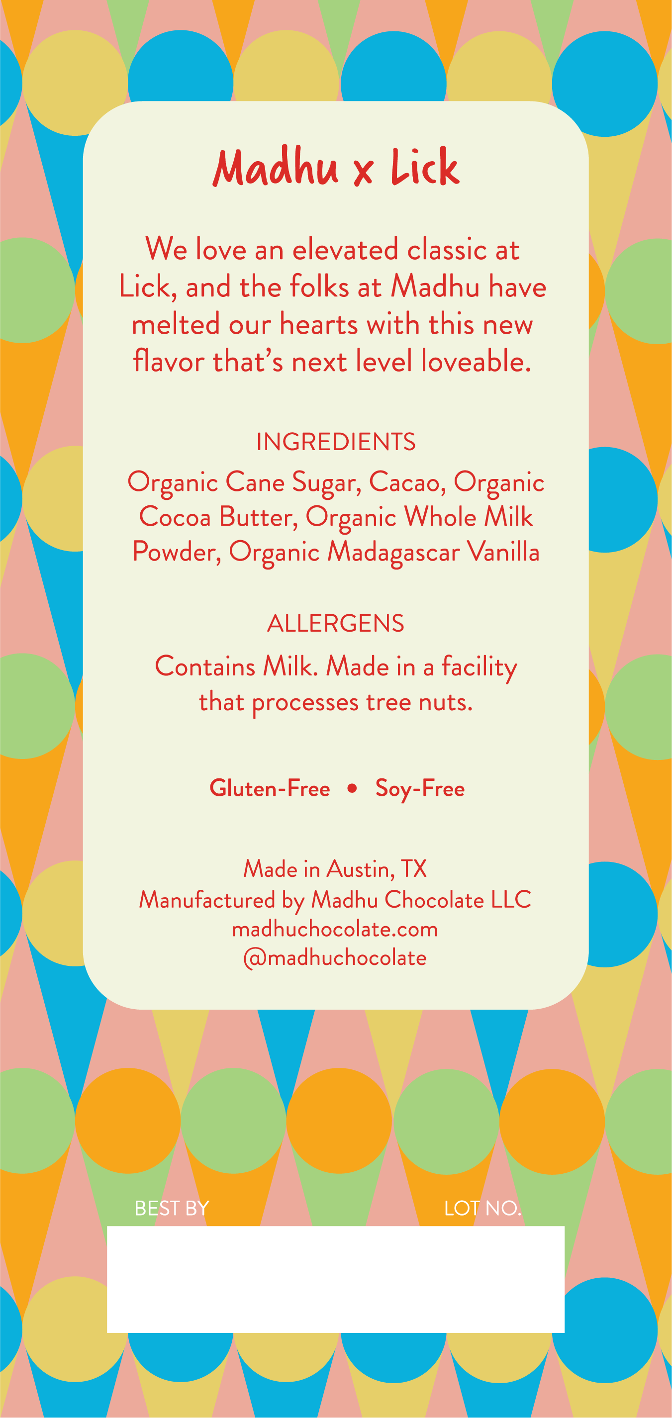 Artwork & layout design for a variety of packaging projects for Madhu Chocolate.